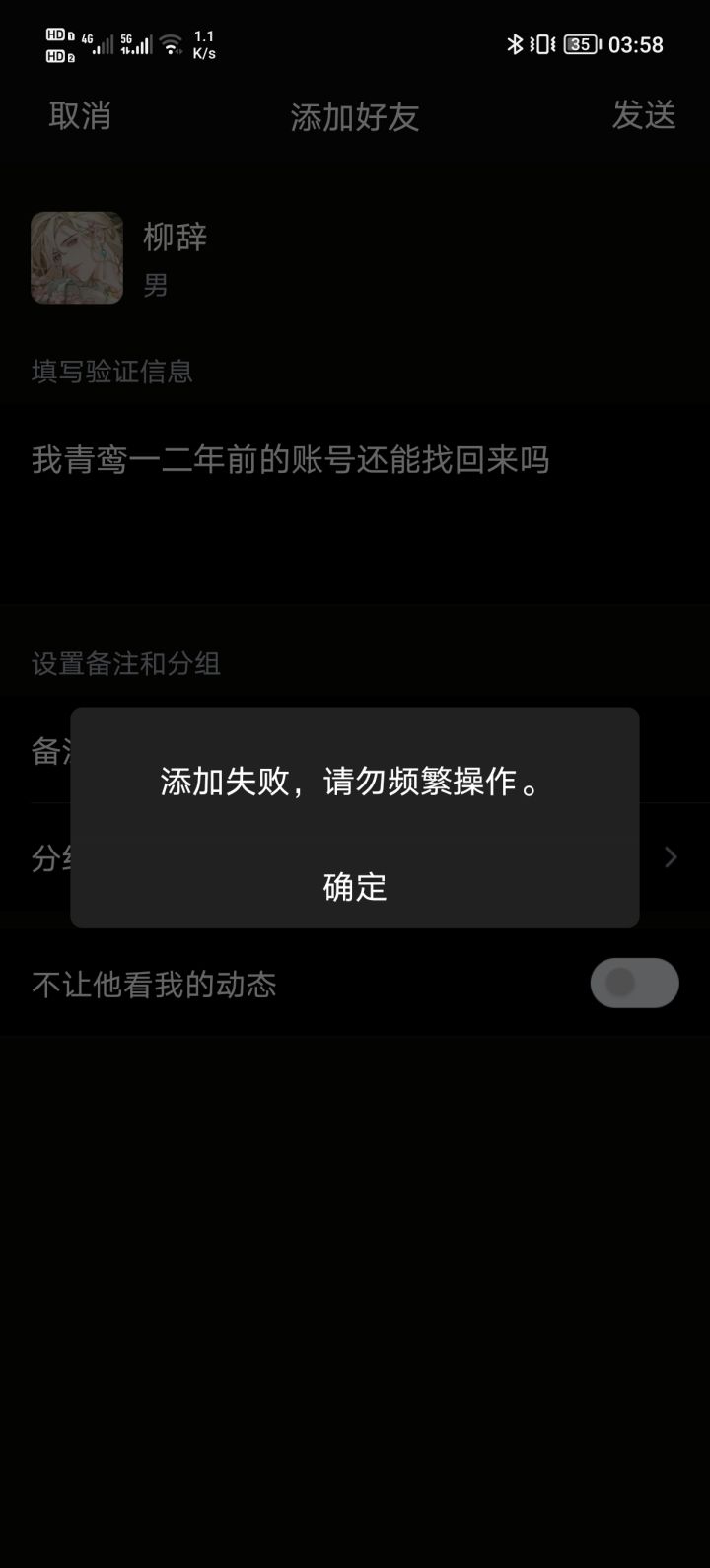 求助🆘想要找回账号 但是那个柳辞的QQ加不了怎么办啊啊啊啊啊 最近发现这个游戏是我以前玩过的 大概有一年多了吧?现在想继续玩但是以前的信息都没有了 我用的还是以前的手机号但是手机换了一个 重开之后发现居然要从头开始了 还挺难过的 而且我玩的那会好像还没有语音(不知道有没有记错)当时还是刷QQ空间看到游戏推广直接下载来玩的 还养了好多小孩在里面😭现在登不上去感觉小孩白养了