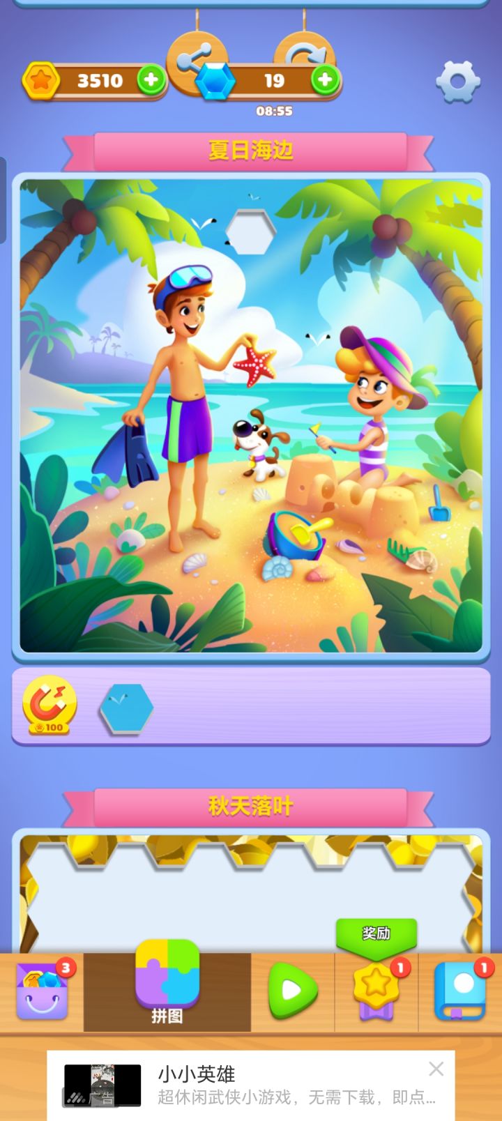 关卡好贵,免费钻石到30就封顶了,30钻石开不了几关,而且有的关卡需要三十多钻,除非完成任务得到奖励或者看广告氪金,否则连关卡都解锁不了,十分钟攒一颗钻,30钻要5个小时,就不能减减负吗?钻石这么少每天就只能玩那么几分钟,要你这个游戏在手机里有什么用。广告强制跳转观看是不算时间的问题也是个大聪明设计的。
