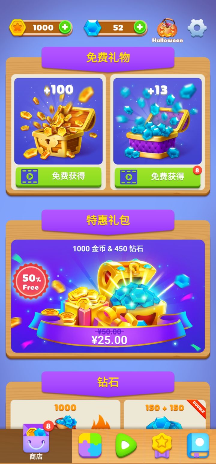 钻石太少,回复速度太慢,谜题太简单了(通关了日本拼图Katana的路过)