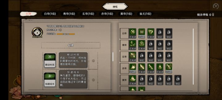 玩了四五次,死了一堆人之后,终于这次在第7年目前还没有大面积死人了......先记录一些自己的心得,感觉正式版后也会很不一样。期待修复诸多BUG的正式版!Tips:善用中间底下的“神威”1. 开局先用“神威”,免费建一个“书院”和“灵石司”;再用一个“神威”(忘记名字了),直接拥有一个“信徒”,开启科技树2. 神威满10次就不能蓄力了,所以有了就用,不用太吝啬3. 神威升级之后,