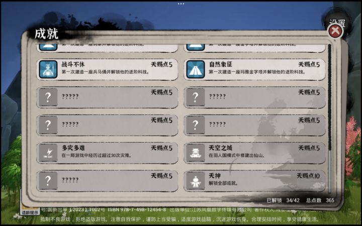 用灾难卡绝对超过30次了,再加上升级的灾难,但成就还是未完成状态然后还有一个bug,就是用灾难卡偶尔会闪退。。。我猜测是随机到瘟疫卡,对小人进行寿命计算出bug了,因为之前有过一次就是用瘟疫卡必定闪退,那次是有大量老人,然后用了返老还童把老人消掉一些再用瘟疫卡就好了#蓬莱镇