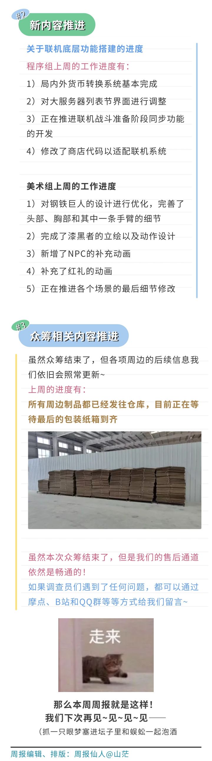 #人格解体周报 Hi 各位调查员,我们从这周起会在taptap同步更新每周的工作周报~对《心之钥》工作进度感兴趣的调查员们可以关注一下~上周我们主要的工作内容有 1.手游版推进2.新内容推进 3.众筹相关内容详情请检阅周报喵!↑↑↑