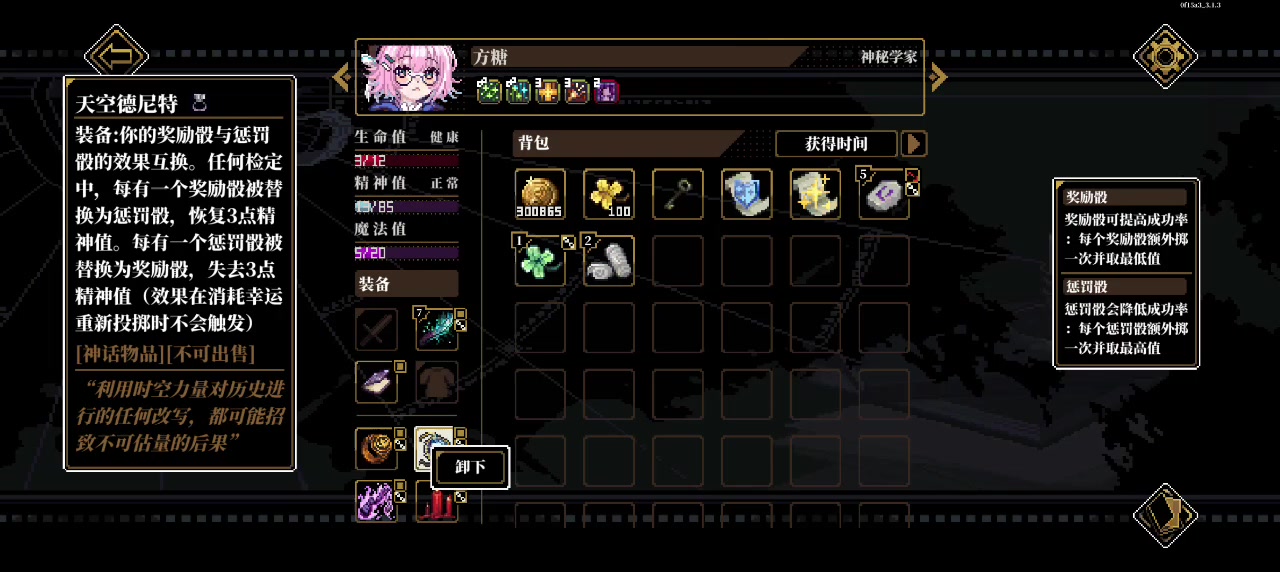 当有奖惩骰判定装备天空德尼特时,精益求精医生大成功后信念无法触发当装备咒欲之门时,精益求精医生大成功后欲念加身效果无法触发