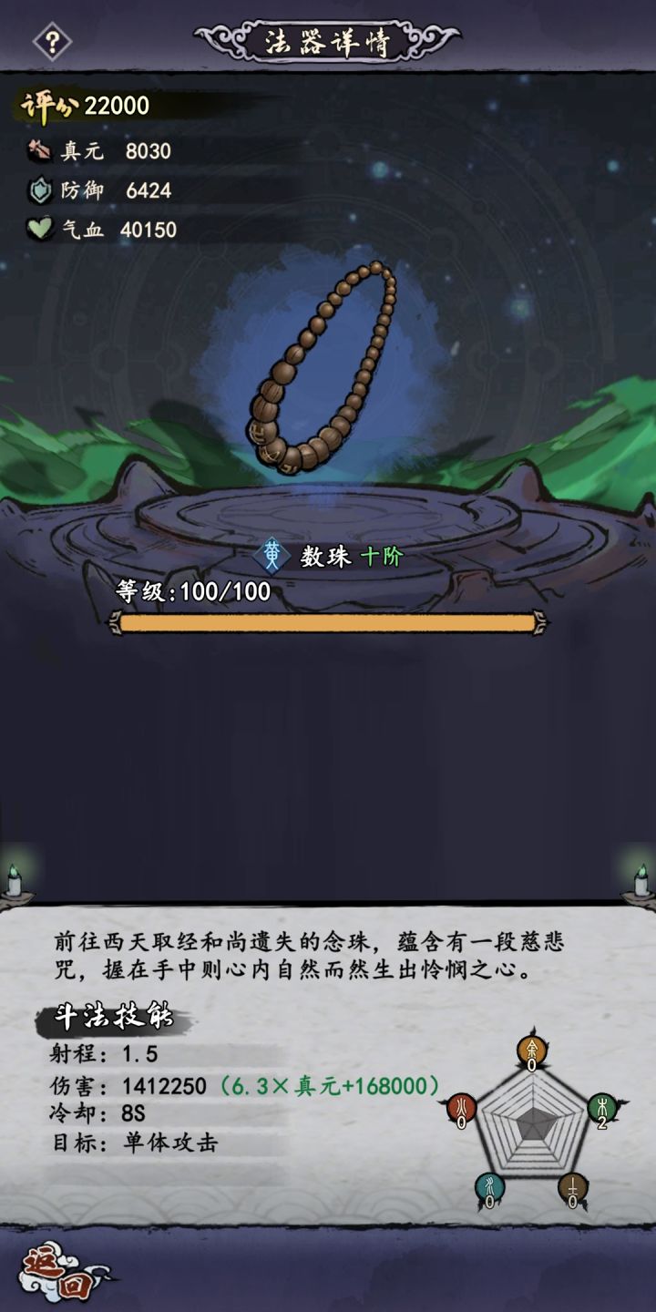 2.法宝并不是品质越高越强,同样技能效果的七星剑和金刚镯,金刚镯基础属性吊打七星剑,低品的数珠伤害也巨高