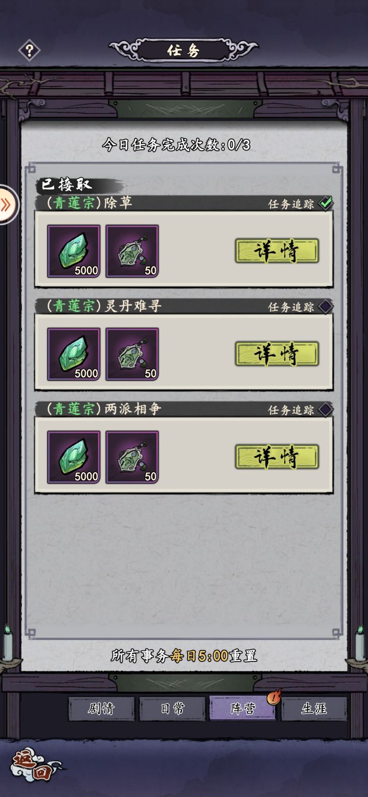 话说,我都不知道啥时候接了这仨任务,我还想着,实在不行就去另一个门派,结果点开任务一看,已经接了????啥时候的事,关键是我不敢乱跑,万一进了另一个门派,这个门派的任务完不成,我特么就废了