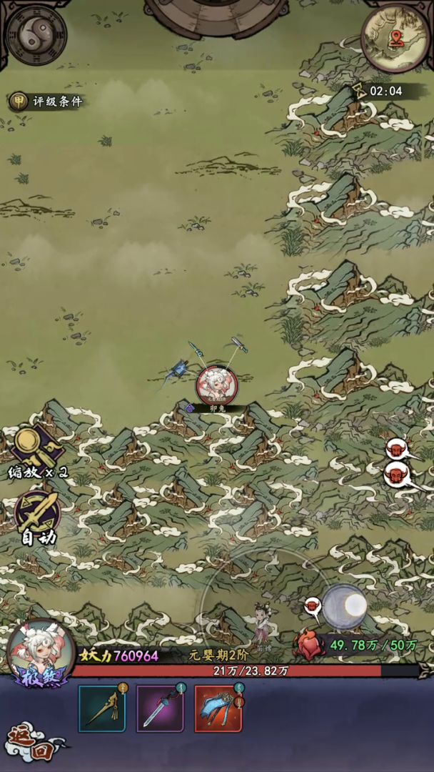 这个游戏,主要核心是修炼,炼器材料考修炼,修为考修炼,妖气考修炼,以及其他材料资源。而修炼就那个按键,刚开始挺有新鲜感,之后就腻了。而且这个游戏的剧情推动也考妖力或者说战力,战力不够第一章都过不去。打怪的战斗画面也简陋,感觉几个球打击,感觉球球大作战都比这个精致。