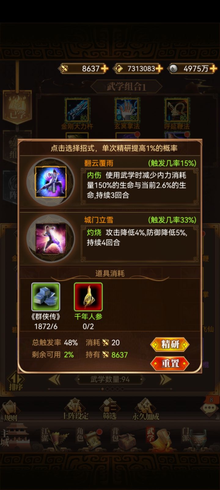 重置有什么好处?不就是返还学一点,还要消耗武学点。但是变回了1级了。属性也变回一级。