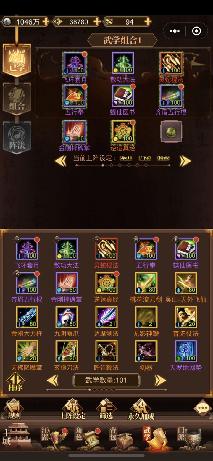 大家好,我们又见面了,长话短说,本期为大家带来各个神功的具体内容。①明玉套:明玉神功+一苇渡江这套神功前期的性价比高,适合剑门派,当然了后期乏力,适合氪佬的前期功法,可以吊打前期没有神功的武林人士,建议还是氪佬可以玩,贫民努力攒资源弄后期功法性价比高。②四照套:四照神功+蝠王草上飞个人认为这套神功最大的特点就是时照功,可以让你出完一次手再出一次,运气好一直出手,让对方出不了手,很变态,而且