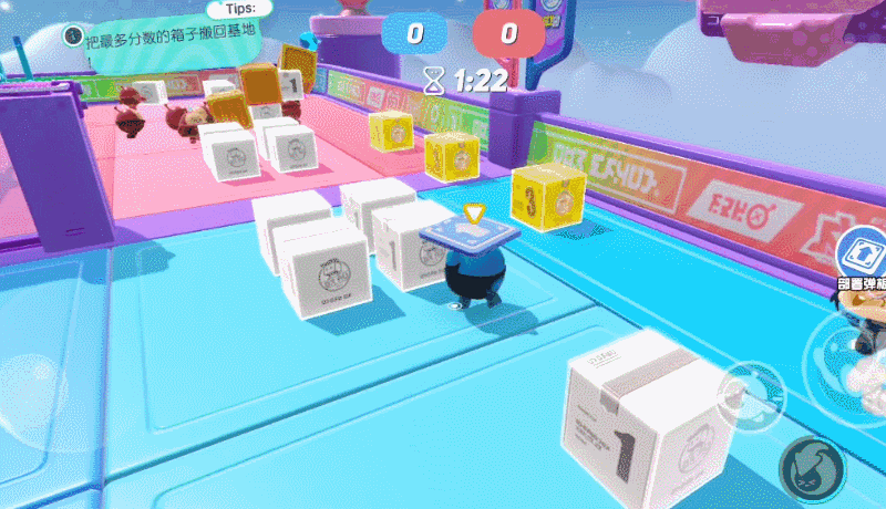 在《蛋仔派对》中,积分赛一般就是通过涂地板、捡分数、搬小球、砖块等手段来获取分数,最后分高者胜的模式。在这个模式下,既有个人赛也有团体赛,同样无论哪种比赛中我们都可以辅助或干扰别人,那么这就来随笔者一起学习一下吧~ 1. 巧用道具运箱子,干扰对手夺胜机比如在搬箱子这种积分赛中,场地会有一些道具可以让我们进行高段跳跃,为了胜利,这种时候我们要快速布置道具,让自己和队友都能快速搬运方块得分。 除此之外
