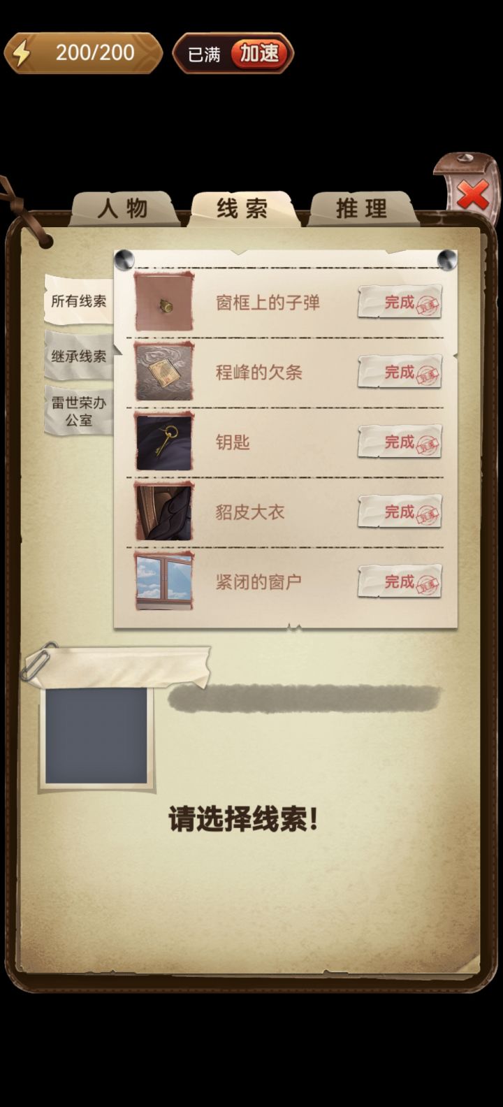 场景更新不了,线索全部搜完了,推理也剩下一个,没有新的场景就没有推理的证据,要怎样才有新的场景?