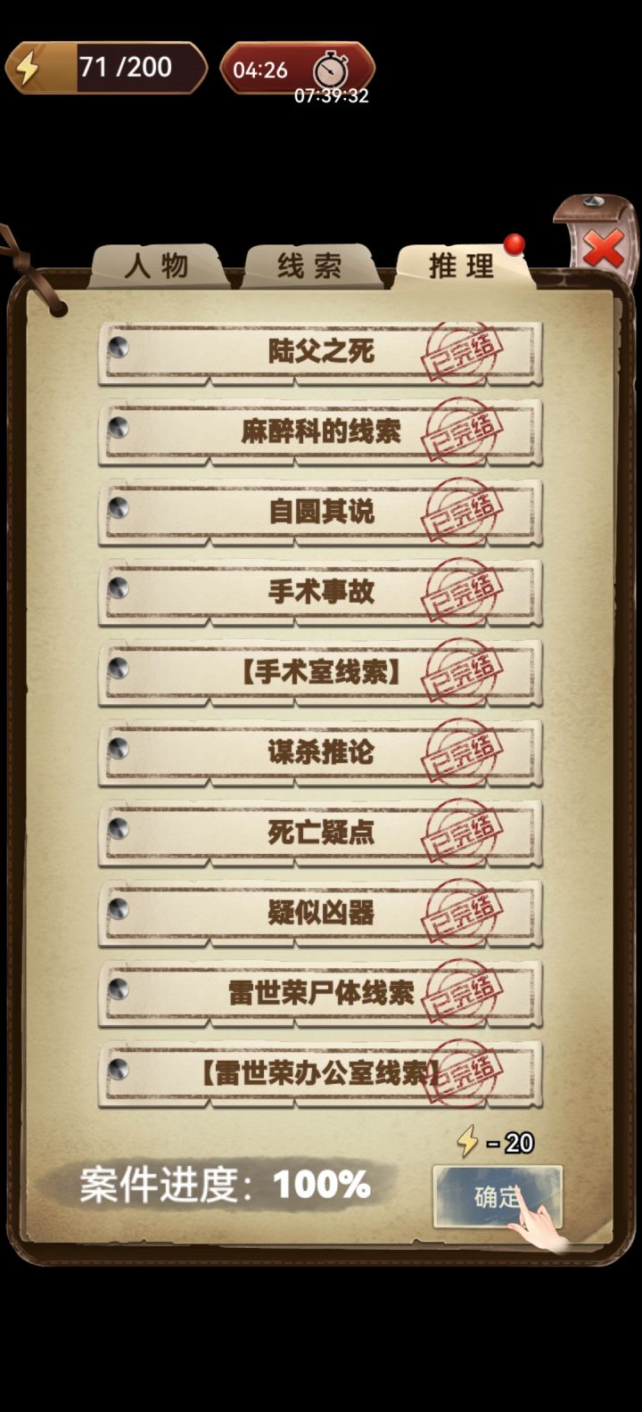从第一部玩过来,刚通关,人还是傻的。根据线索一个个推过来,感情一台手术里面所有人有杀人动机还都动了手,最后真正杀死雷先生的是完全没动机就经历意外突发的人!!四次毒+一次刀都没死!这我倒是能理解。快结束的时候我肯定是枪杀致死😎,没想到!来这茬,这枪是后面补的???可能就是为了出乎意料吧这个设计。