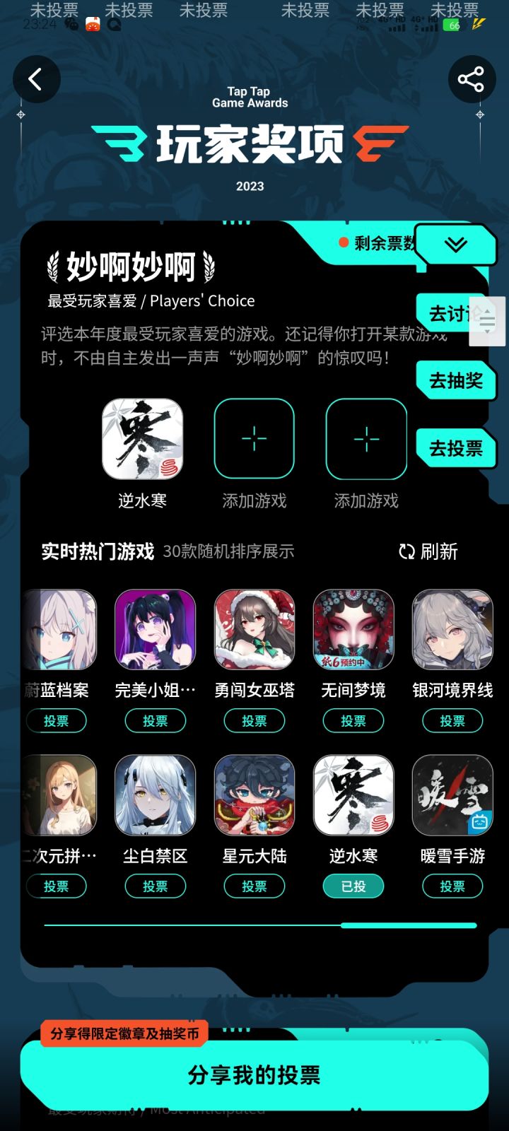 以下我是写给触乐的原话,我觉得对主办方的你们也有,意义故此发在这。作为大一用taptap到大四的学生,我谈谈我对taptap大赏取消人民群众投票的看法,我完全不同意您的看法,游戏是什么?是娱乐,娱乐是为谁服务的?人民群众。我们领导人说过,历史上也讲过,人民大众所喜闻乐见的文化才是真正的文化潮流。个人,评委,代表不了人民群众,也不要用专业等词搪塞,您喜欢的曲高和寡,阳春白雪,未必就是真正的文化娱乐