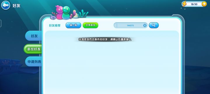 昨天邀请家人跟我一起玩,然后想加好友搜id号,就死活加不上,他那边搜我的也搜不到,但是我俩系统里推荐的好友都能正常加,就是相互搜不到对方,而且我鱼乐圈里加的工会,他也搜不到…但是邀请记录里有信息能看到这种怎么破