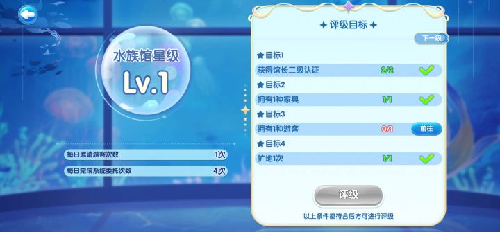 我该弄的都弄了,家具也解锁了,水族馆等级提升不了,就是邀请不了游客,游客栏全黑#萌鱼泡泡 #萌鱼泡泡手游 #萌鱼泡泡游戏