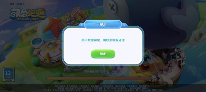根本进不去游戏啊!重启还是同一个提示,公告说是不停服更新,怎么会打不开了呢#今天游戏圈发生了啥 #浅评一下 #萌鱼泡泡 #萌鱼泡泡游戏 #萌鱼泡泡手游