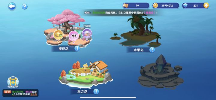 限时出游:12开始,创建队伍或者随机加入。创建樱花岛队伍需要五个图纸。创建水果岛队伍需要10钻石。