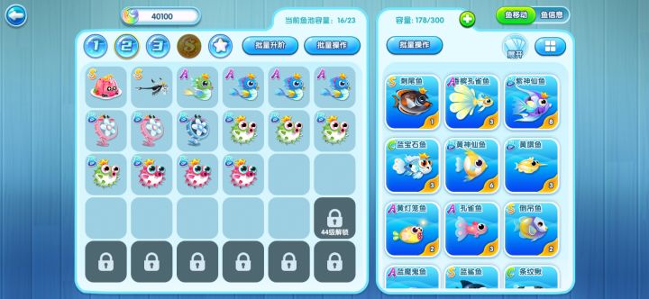 5.扭蛋机的话,建议十连抽 ,不要单抽,要是可以,扭蛋机里会有限时抽的鱼,可以在那时候抽,这样划算一些。钻石尽量不要用来十连抽 ,不划算。扭蛋机每抽一次,会赠送你 一个像钥匙扣一样的东西 ,可以用来兑换扭蛋机里的鱼,根据稀有度的不同,兑换要用到小钥匙扣也不一样