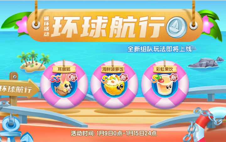活动时间:1月9日0点—1月15日24点具体活动时间以游戏更新为准海风将航船抛向浪尖,海浪之下暗潮汹涌而生。环球航行全新玩法开启,更有航行合体新路线等馆长前往体验~带上伙伴和宠物们向着传说中的宝藏前进吧!SS级耳廓狐S级彩虹果饮S级海鲜菠萝饭组队规则① 活动开启后馆长选择一只宠物参与航行,每队成员为6名;② 周一为组队期,周日为结算期,期间船队无法航行,周二至周六可正常航行;③#游戏推荐