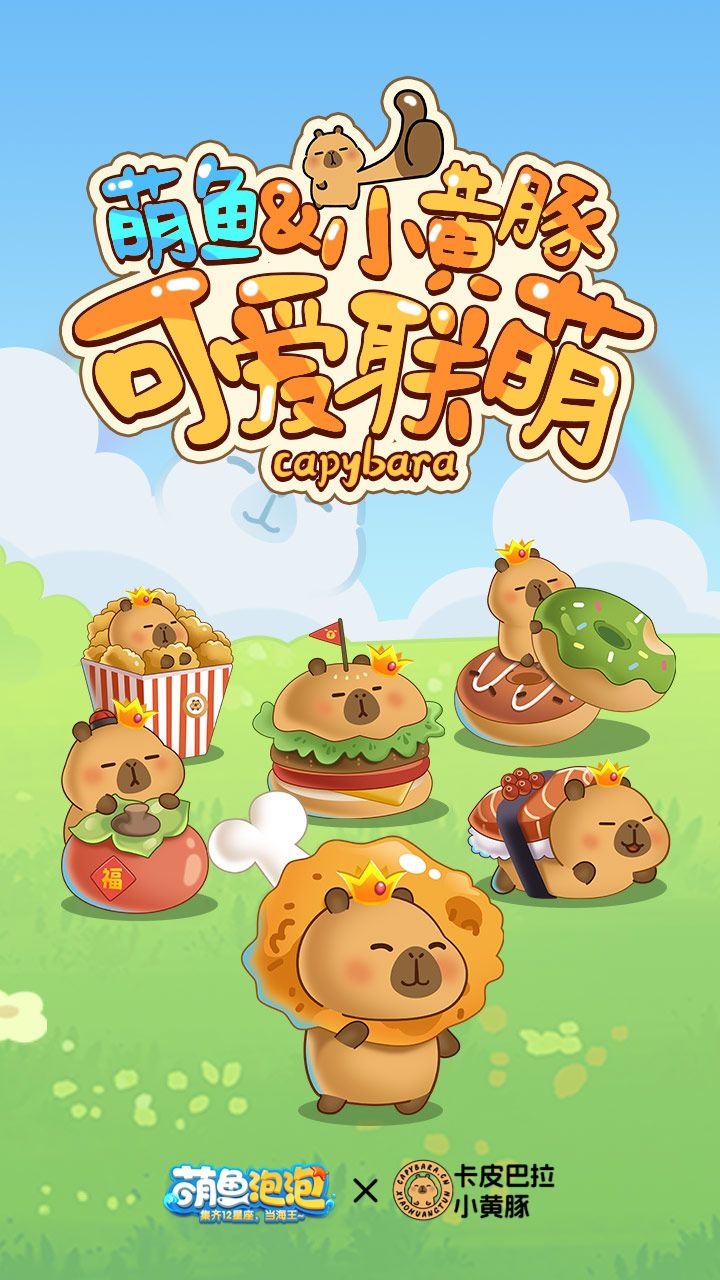 🍟🍔当汉堡、薯条、甜甜圈碰上可爱卡皮巴拉,美味四溢的萌趣之旅就此展开!⏰1月13日萌鱼泡泡 | 卡皮巴拉小黄豚联动开启,美食系列萌鱼飘香上线~#卡皮巴拉 #游戏资讯 #萌鱼泡泡 #游戏日常