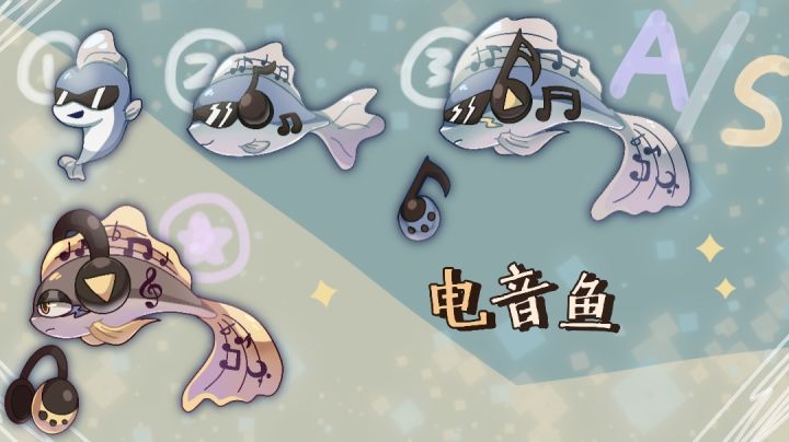 【自由主题】电音鱼+ID:284936鱼名:电音鱼变异的为哥特电音鱼(暂定,可能会改)鱼宝:蓝蓝音符/黄黄耳机(暂定,可能会改)等级:A或S观赏值:暂未定简介:当你听到那动感的音乐时,就说明ta来了!(普通)让旋律融入心灵,隔绝这世间的一切烦恼吧(变异)——————————————其实还有很多其他鱼还没画出来,下次可能还会参加(p2是游泳动图希望我能在游戏里看到这条鱼😭