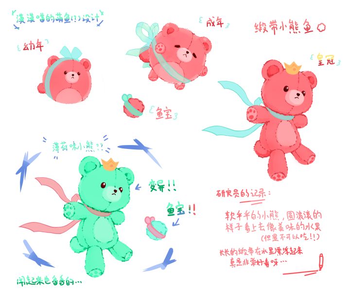 【面朝大海春暖花开】缎带小熊鱼id289889绑着缎带,散发着香气的小熊,在春天的小鱼缸里陪伴你 🌸大佬们别卷了!•᷄ࡇ•᷅画力有限画的不太好大佬们理性评论,电脑和手机的色差真是太严重了,导出图片之后颜色亮了不少,原来的颜色是比较淡的,麻了