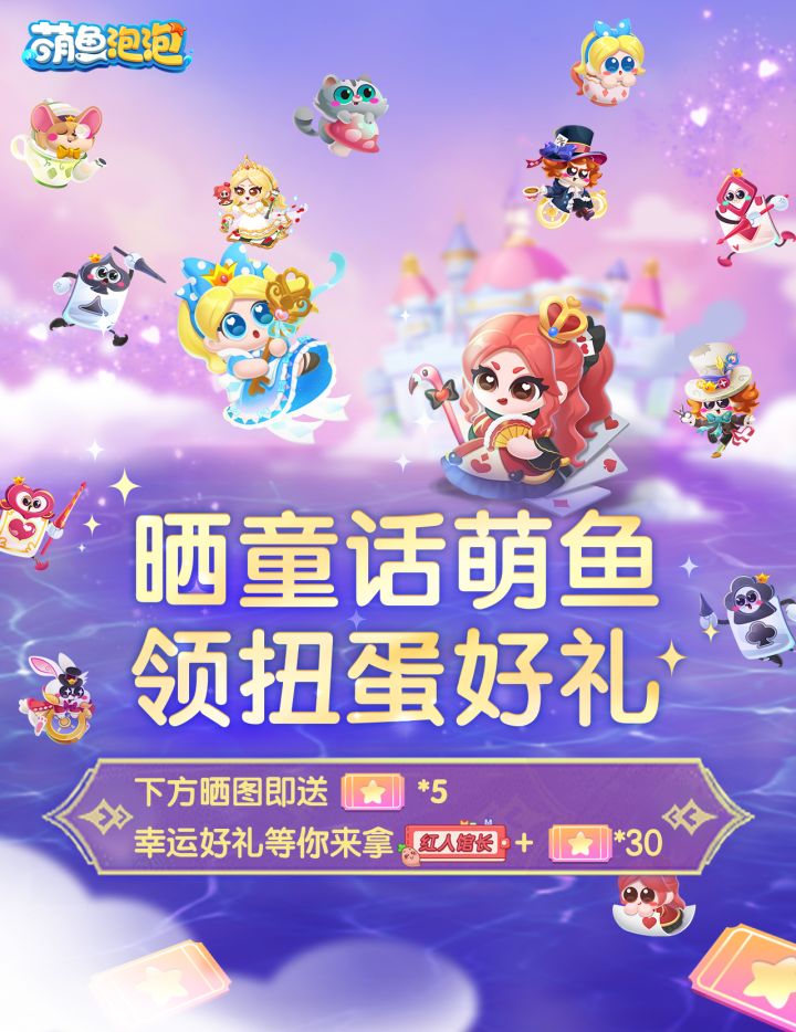 扭蛋抽福,欧气常驻!“童话梦境”扭蛋活动开始啦!终于可以将日思夜想的童话萌鱼带回鱼缸了~当然!为了给馆长们展(xuan)示(yao)童话萌鱼的机会,可在本帖下方晒出已获得的童话萌鱼鱼池美照嗷,并留下游戏编号哦!泡泡也准备了扭蛋应援好礼!参与晒图的馆长直接发放【扭蛋券X5]道具另抽取2名幸运馆长送出【红人馆长称号+扭蛋