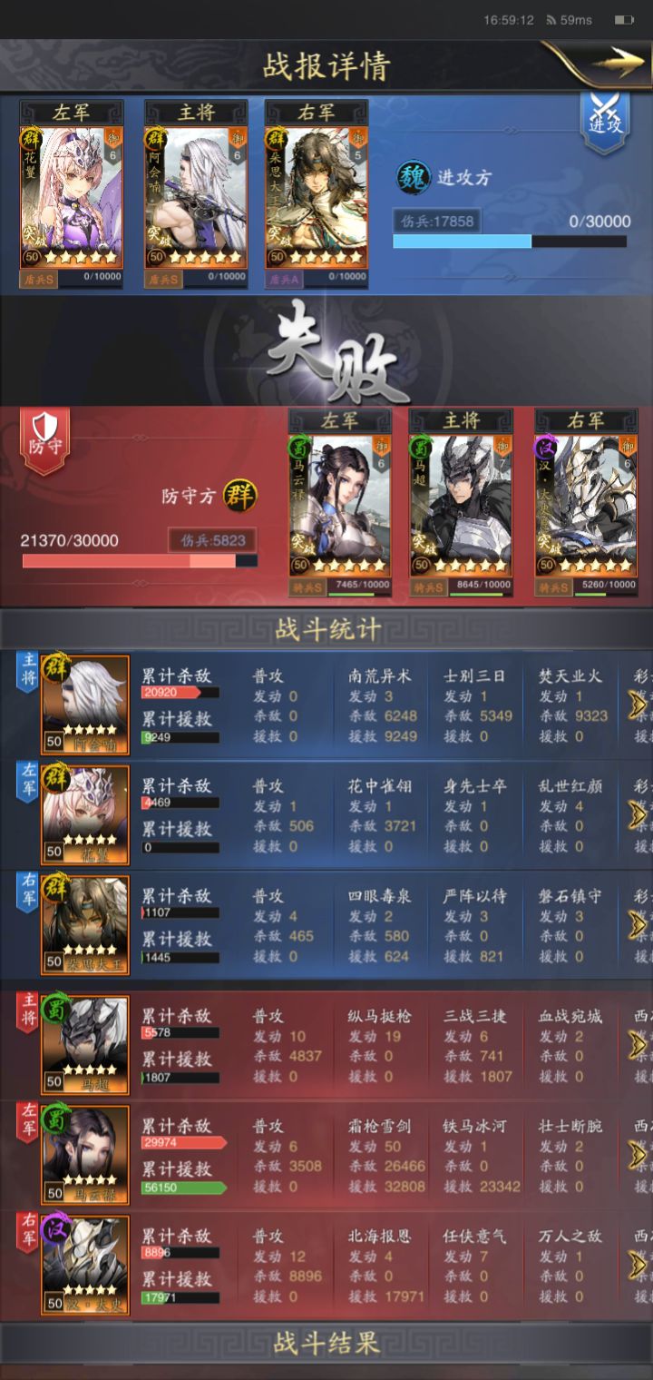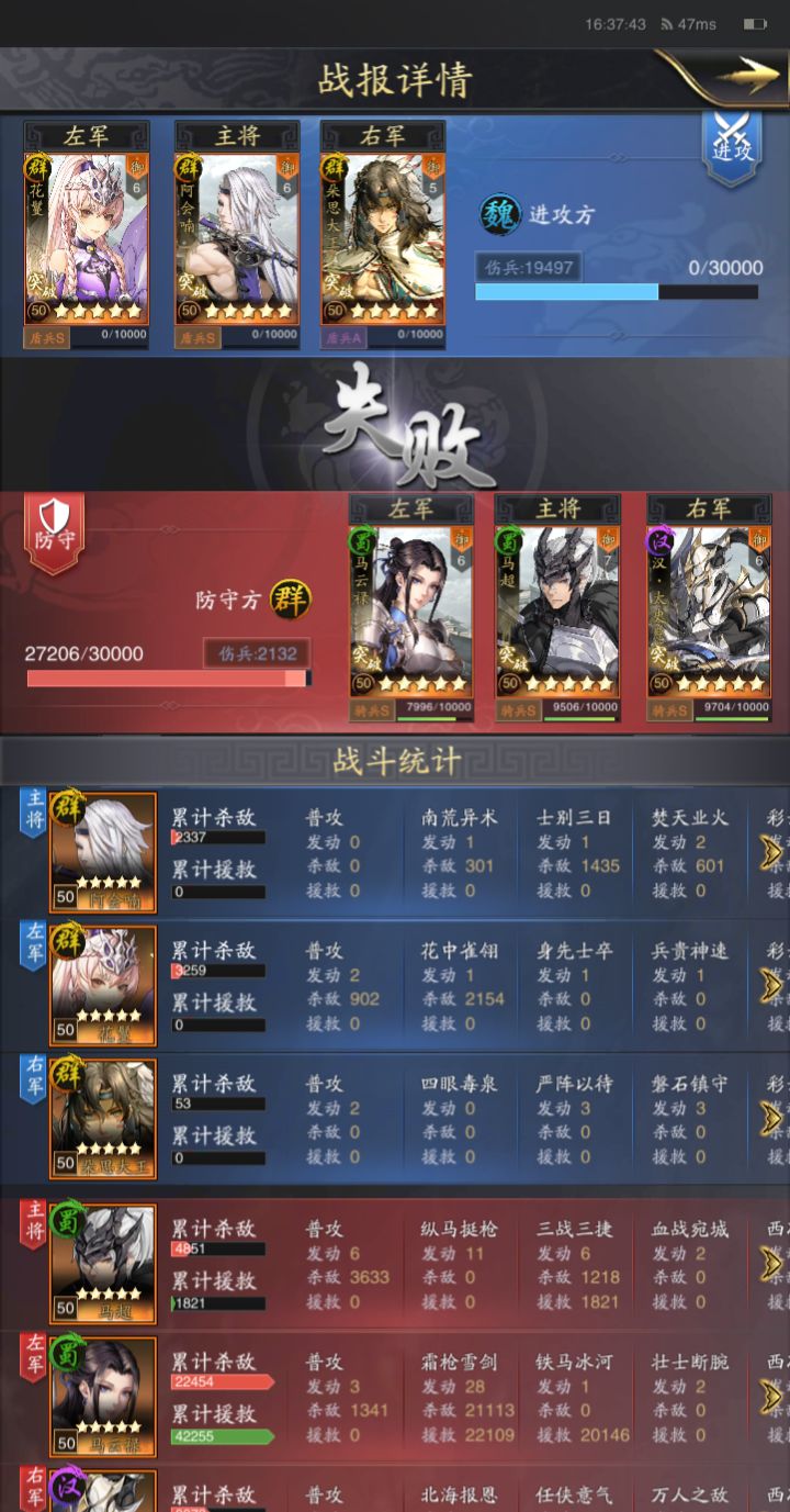 下面是两队的沙场战报因为是防守方所以都是失败。第一次写攻略讲的不全可以指出