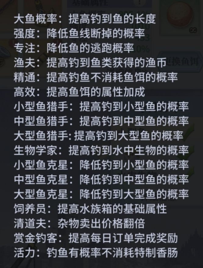 前言06:00-17:59为白天18:00-05:59为夜晚渔具最高50级水族馆最高20级一、基础升级鱼竿,鱼钩(主升且均衡升)鱼线,鱼竿(只要不跑鱼就不升)水族馆(先把每日鱼饵和每周金贝都买了再去升)二、水族馆存放鱼种水中生物:金海龙刷新渔场:海神岛昼夜概率:白天概率提升小型鱼:暂无中型鱼:胖子鱼刷新渔场:岩浆湖昼夜概率:全天概率提升大型鱼:炽炎鲸刷新渔场:岩