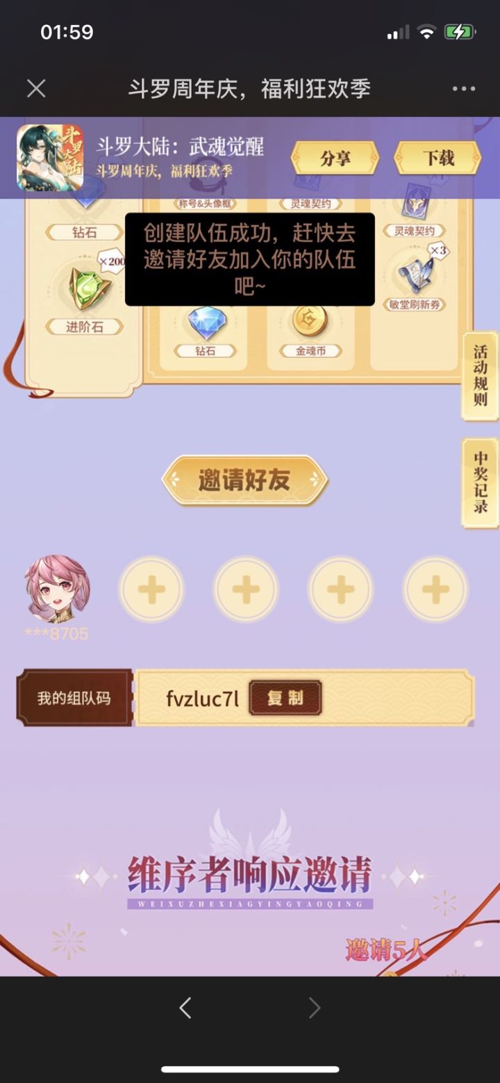周年庆活动四等一,dsbf9jpt,集齐五个人可以领十个抽奖券,冲冲冲