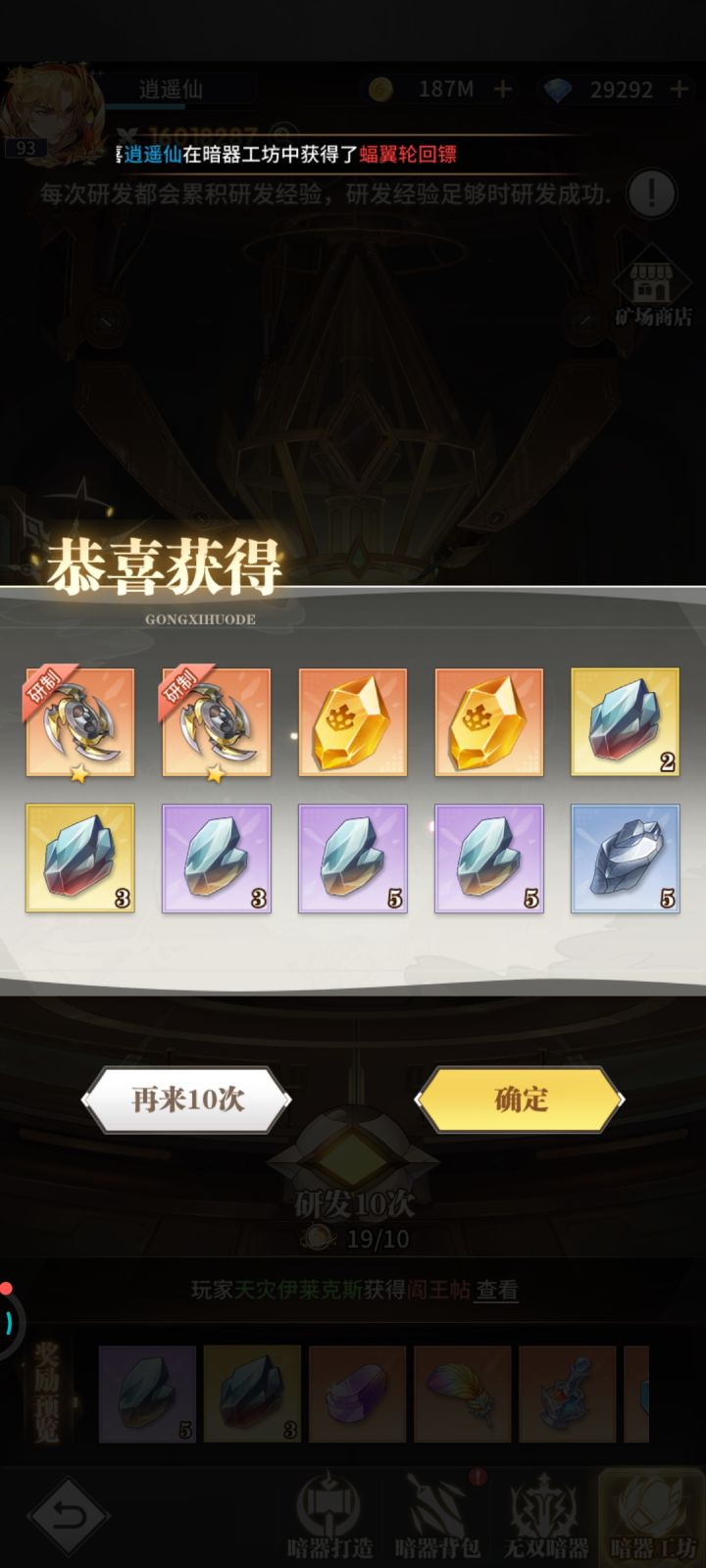 十连抽两个暗器,十连抽两个金(虽然没啥用,但是也算两个金)