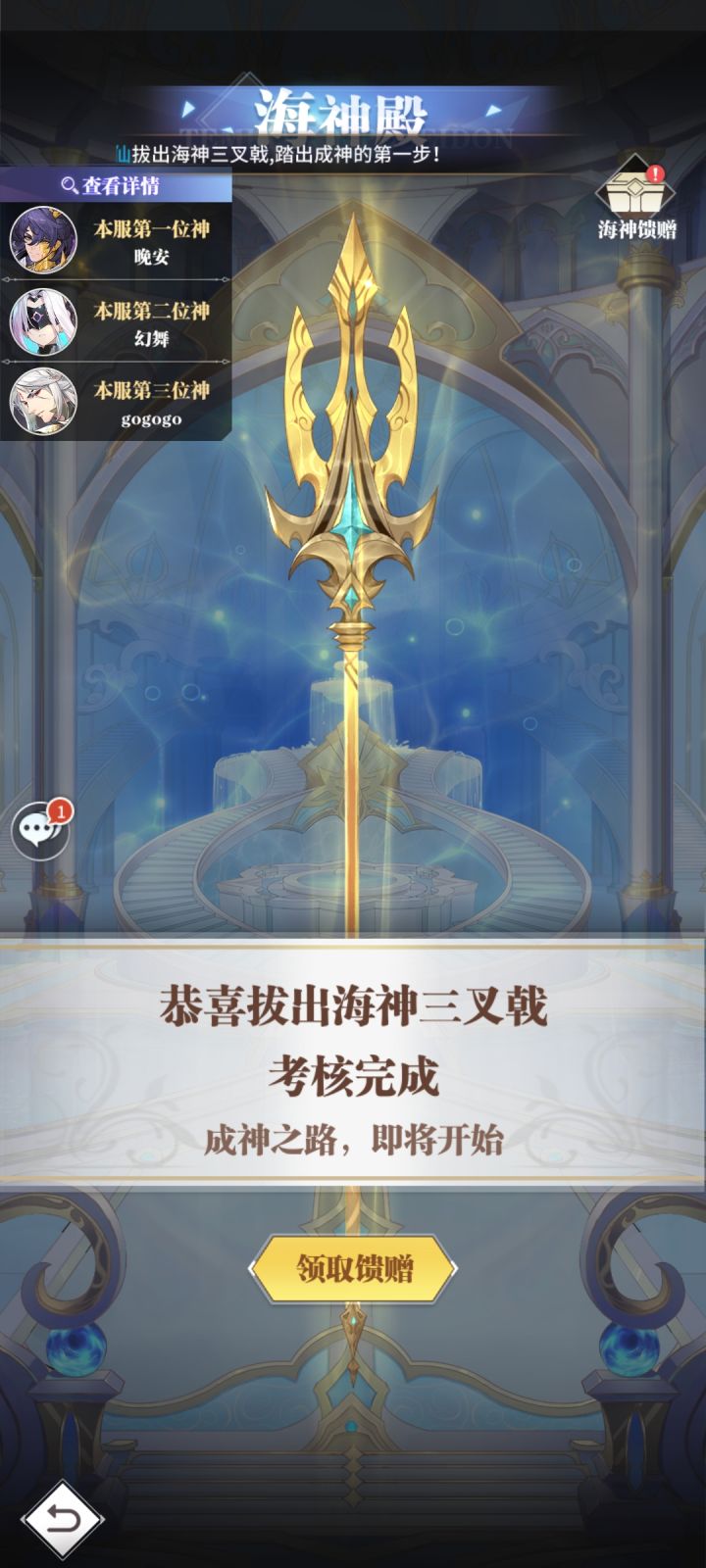 到了100还成不了神吗?我已经拔出来海神三叉戟,明天100级了。