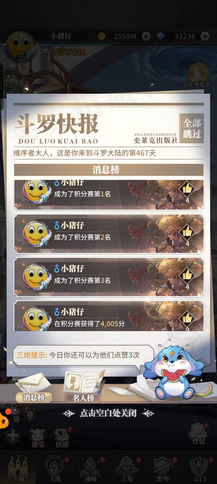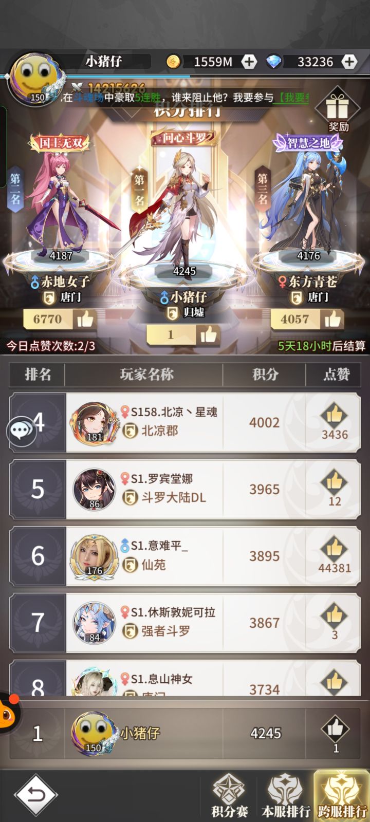 这次上榜我取了巧(一直与低战力的人刷分),但不管咋说也是到过第一的人了😁