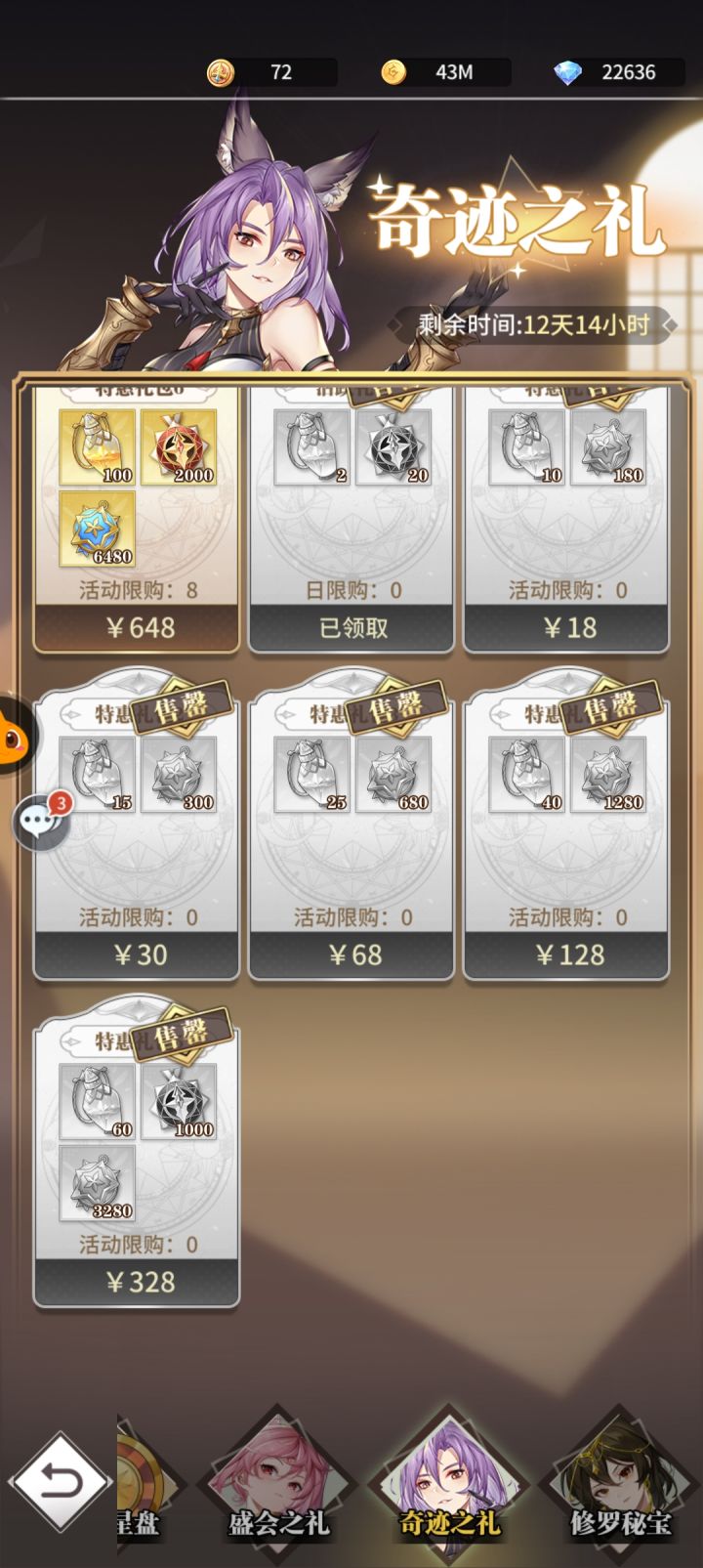 氪了这点礼包和98的卡包,算上剧情和其他给的差不多混个成神🙃