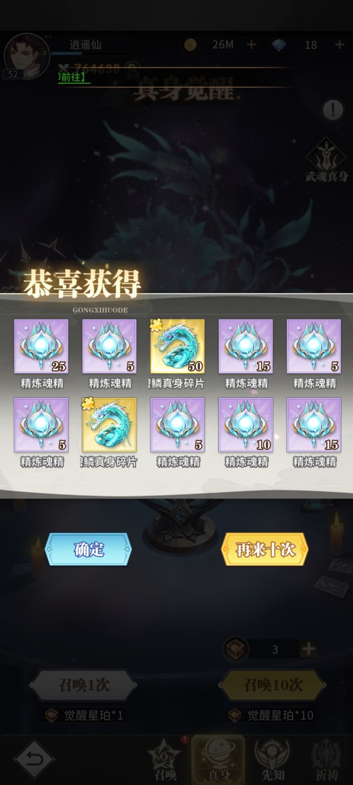 1.今天直接抽中真身,然后到了2星。2.心愿我选的是战神戴沐白,魔鲸王,海魔鬼。3.名匠碎片有啥用?今天一发入魂,抽中100个。4.换谁?