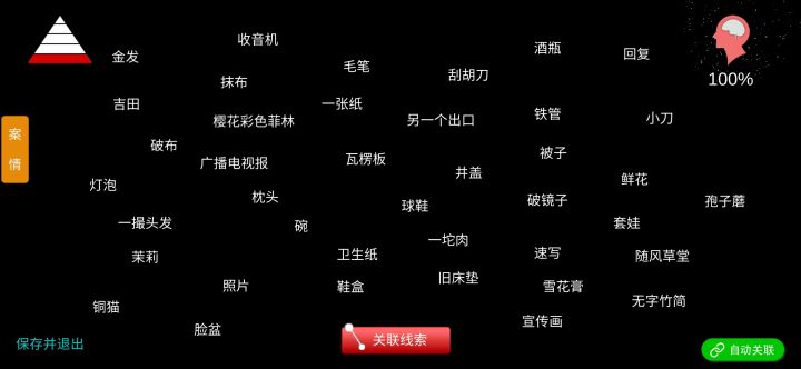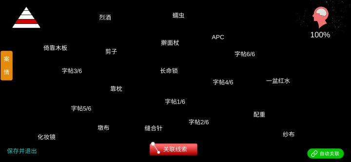 温馨提示:游戏中有大量线索都需要查看物品详细情况,切记,我就因为忘记忘记查看而丢了一条线索——目录:1.线索图鉴2.关联公式3.重要线索————一、线索图鉴————二、关联公式1.其他人:金发,樱花彩色菲林,球鞋2.林淑秦:其他人,存折3.一个方法:纱布,Apc,缝合针,外科手术,林淑秦4.真相:神兽1,神兽2,怪石1,怪石2,一个方法,林咏欣,长命锁,5.凤凰盒子