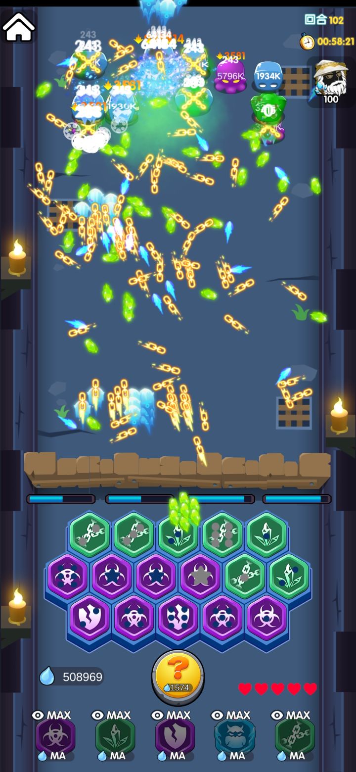 刚更新我就开了一把,发现100关卡前的BOSS太肉了,每次BOSS都是撞墙死的,建议削弱一下