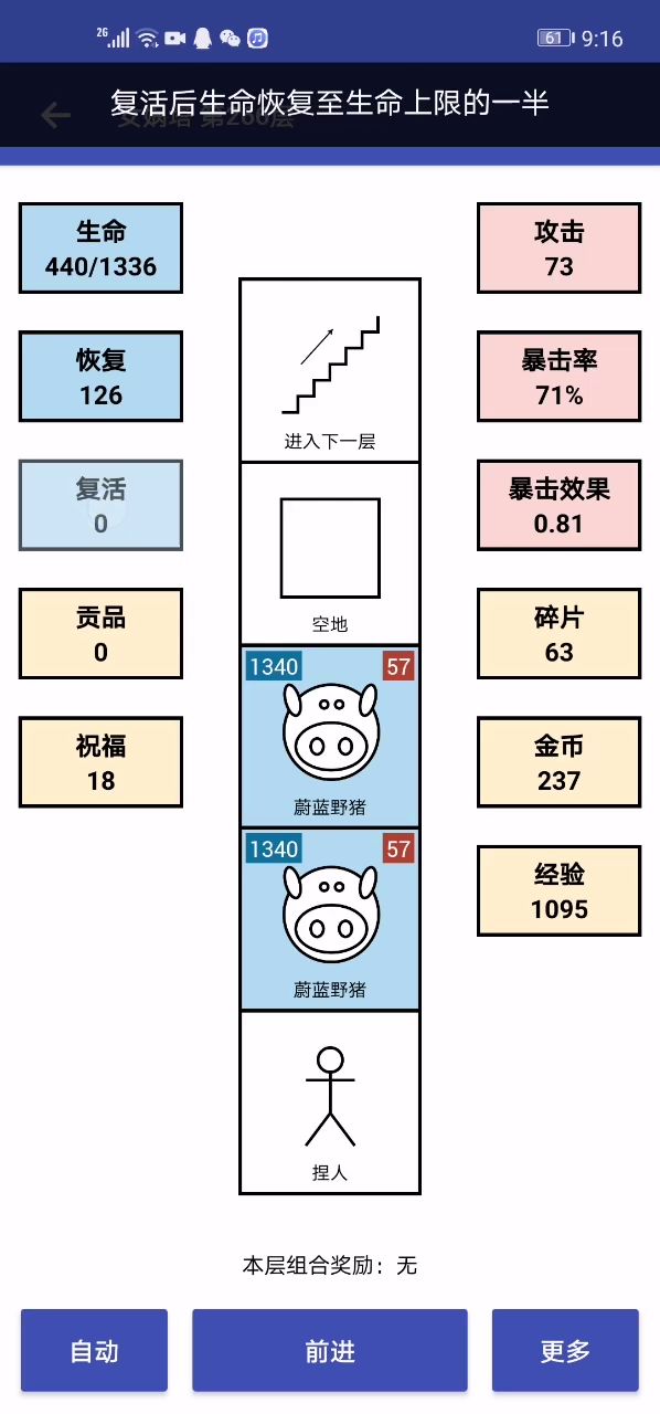 金币全留着买复活了,然后70层就打不动我了,核心技能被打回攻击百分比的血,前期什么都不买就买了复活