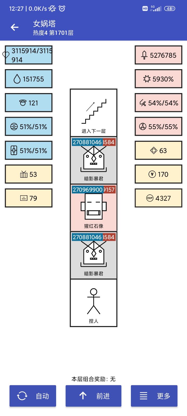 打了两把论生命的重要性。暴击都刷到5000%+攻击力差这么远第一个1700层也是刮痧,打不动,直接弃了。(2亿生命就离谱)