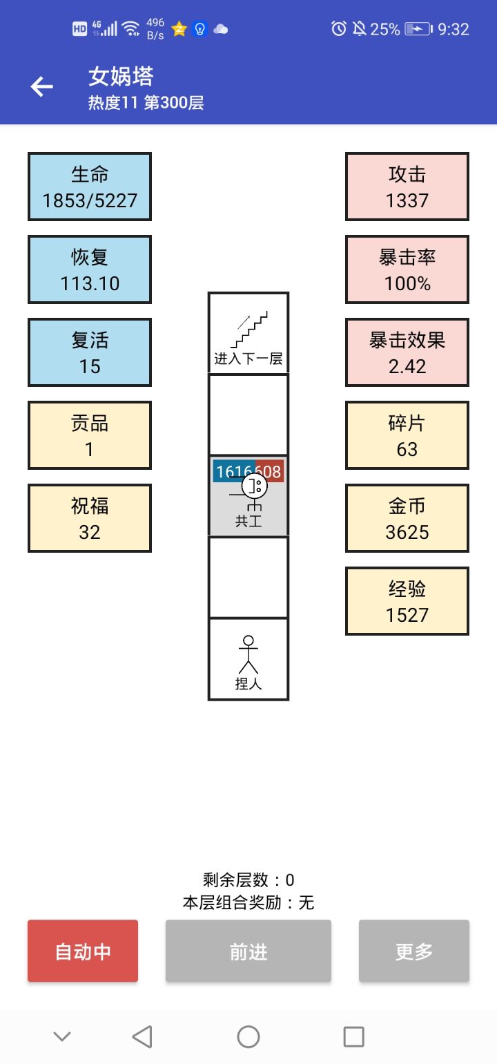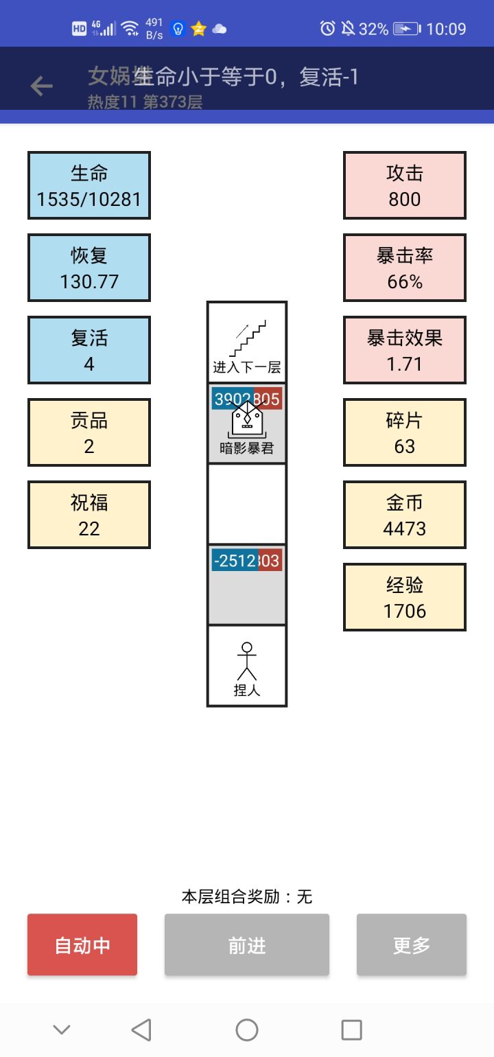 到后面商店刷新率太低了,死二十条命过了60多层都没有一个商店。。主要是开局没加朱雀重生攻击的buff,中间出了个紫的就点了。硬换了橙buff结果撑不到第一个1000商,乱开凑经验的结果走过去了。无心插柳柳成荫。奶奶滴。