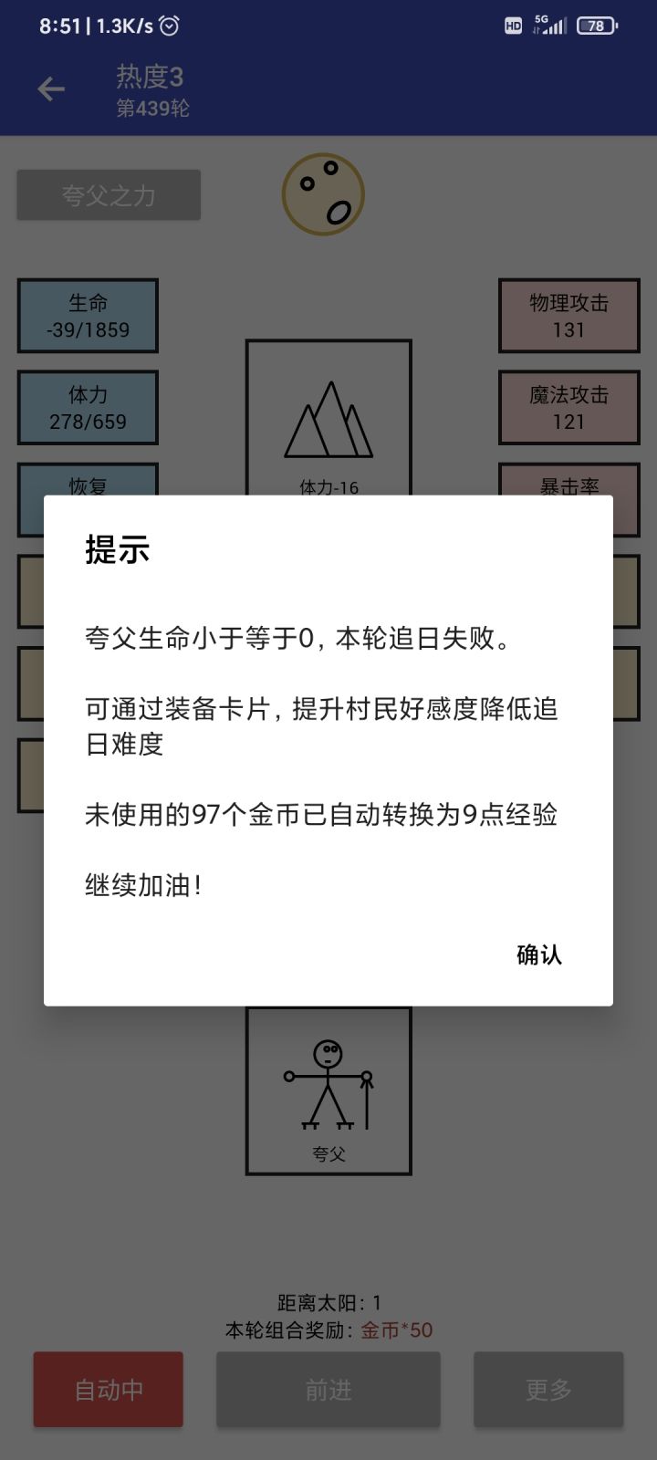 非酋也有脱非日!经历了1211轮 距离太阳12 去世 1112轮 距离太阳20 去世终于在1141轮 通关热度42至此,档案室全部完成😁如果有人需要攻略,我再发贴😎