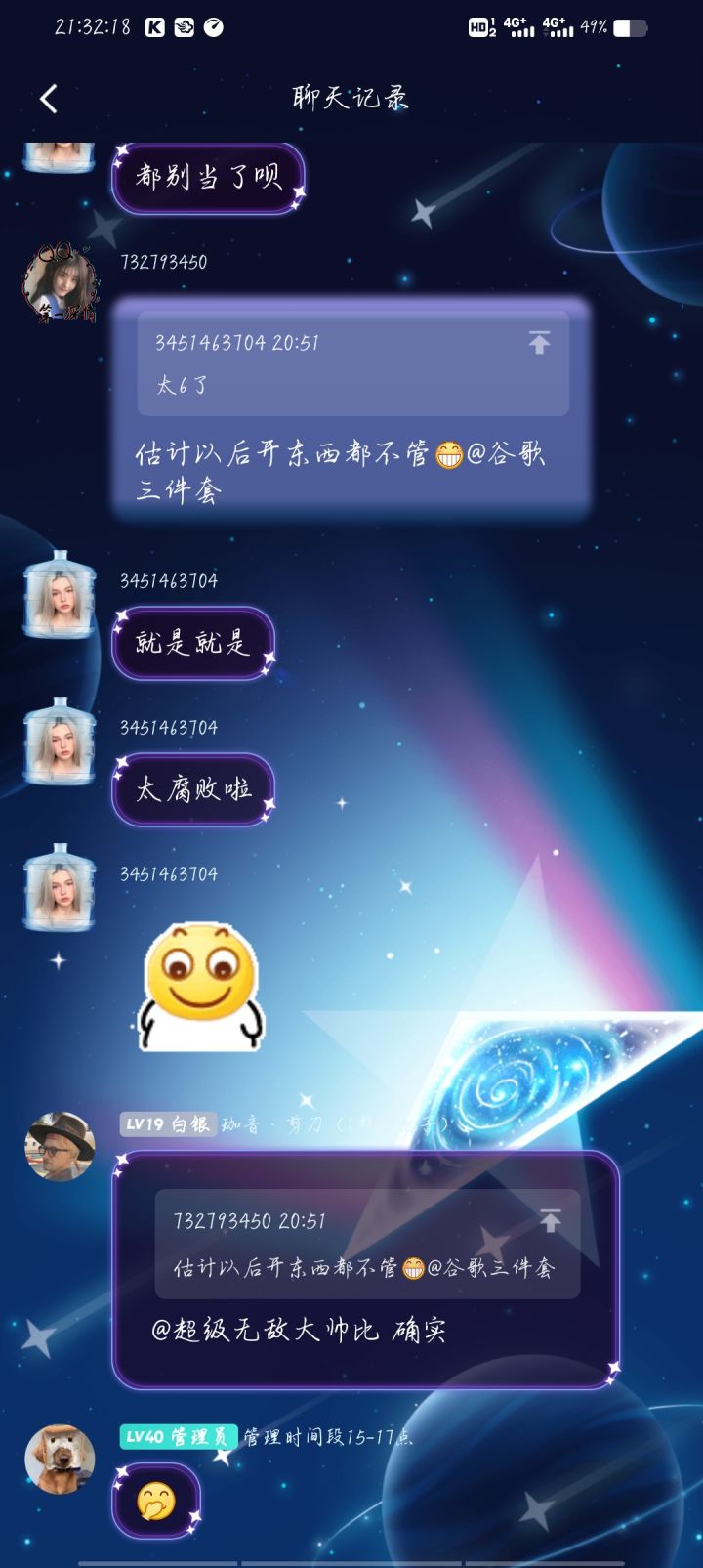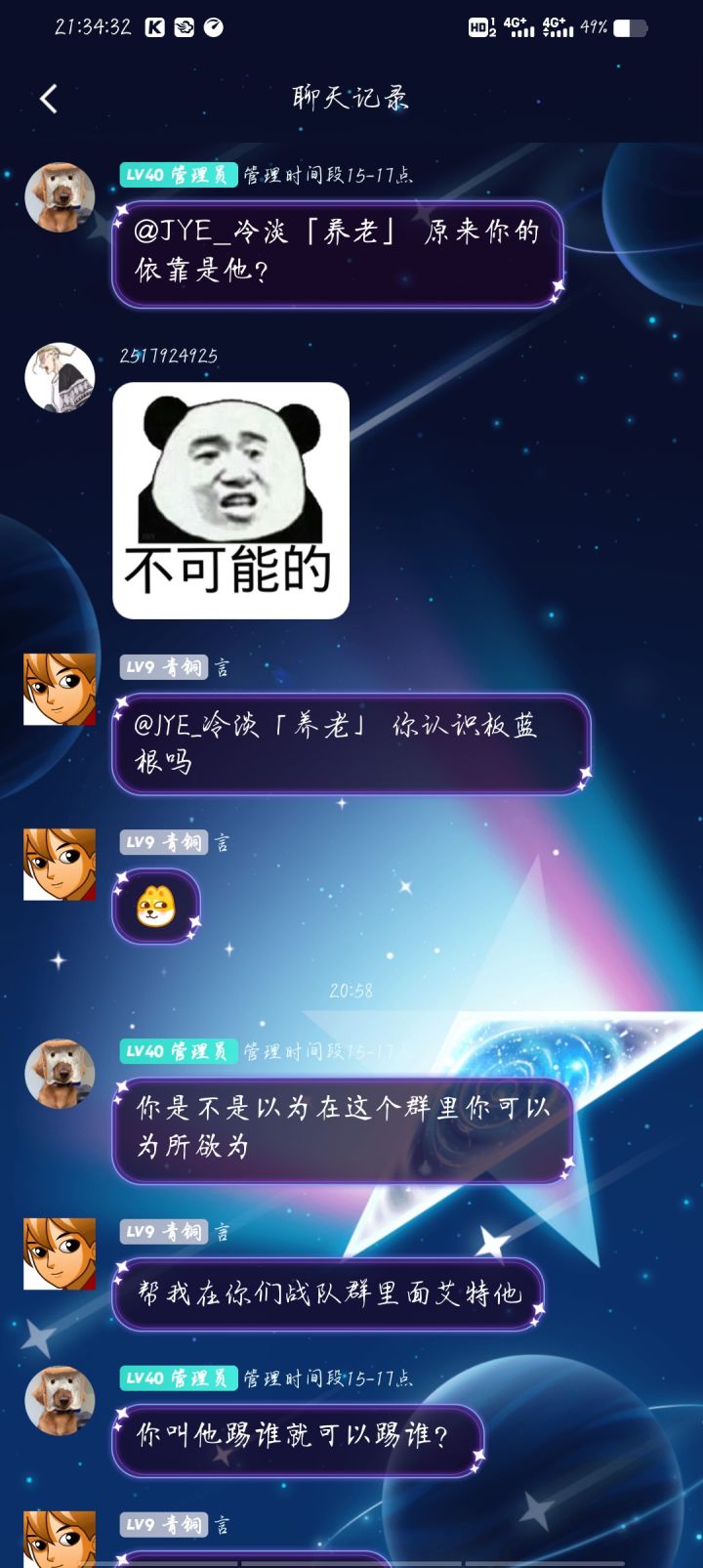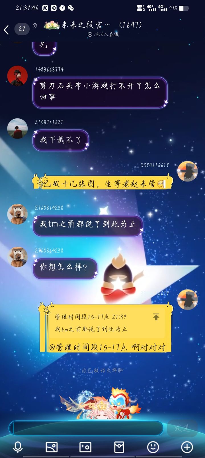官方2群,一个管理的态度就是这样?面子这种东西很重要?连一个开挂抢红包都不踢?还一直护着,啧啧啧说到此为止就到此为止了?不问问其他人的感受?真就仗着自己权大呗😏