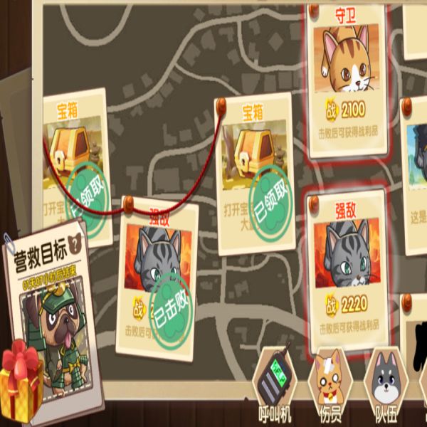 营救行动两天刷新一次,玩家需要通过自己选择不同的行动路线去营救出最终目标拿到最终奖励!行动目标共有五种,分别为强敌、守卫、宝箱、伙伴、急救包。小编这里强烈建议遇到宝箱路线必选宝箱,因为白嫖的奖励实在太香了,游戏中三大资源金币、宝箱币、钻石,宝箱中都有机会获得,这谁拒绝的了呀!强敌关和守卫关都是经典的对战模式。区别在于强敌通关获得的金币是多于守卫的,且难度也比守卫稍高一点,这里小编鼓励大伙能打