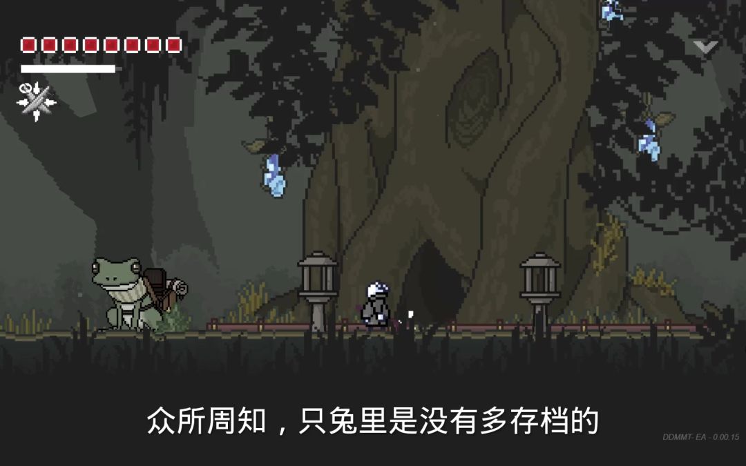 值得一提的是在用先存档后开新档的方法进行新游戏后,虽然我们的大部分东西会被重置(如天赋,饰品,仓库里的金币和月魄等),但仓库里“杂物”的材料和道具却不会重置,青蛙车站即使没加入协会也能继续使用(前提是你在旧档已经解锁了,并且找到了对应的站点。不过青蛙车站是单向的,即只能从其他青蛙站点传送回协会) 这样我们就可以在旧档刷够大量的基础材料,然后存档保存再开始新游戏,这样就能快速度过前期武器伤害不够,角