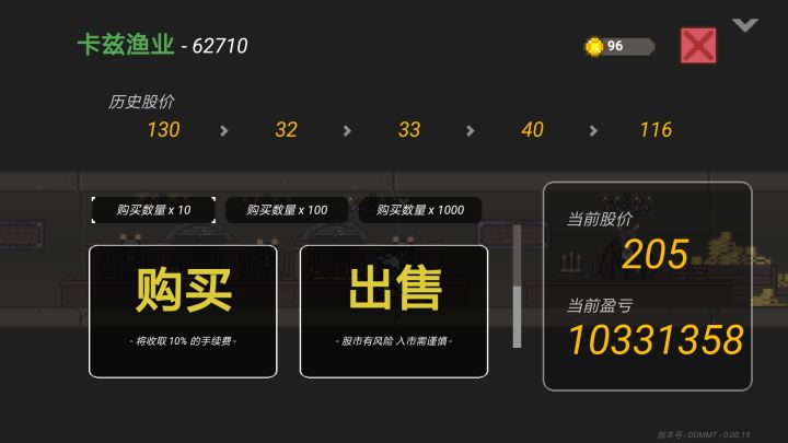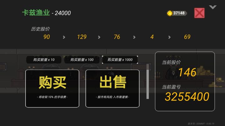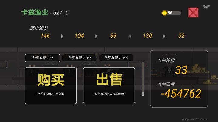 1.低价买入2.存档3.反复刷(股价旁边白条为刷新时间)4.搬空家具