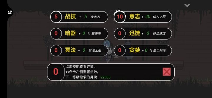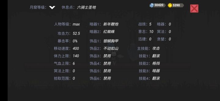 版本更新了肯定会有不少bug,我目前就发现2个bug,分别是:1.餐厅界面没有退出键,可以从此图发现我是5格血(圈起来等会有用).2.佩戴上戒指后,血条从5格变成2格,在把戒指卸下来原来的5格血就固定在2格了。希望作者大大尽快xiu,fu,这游戏我蛮看好的,哪怕后面收费我也得试试