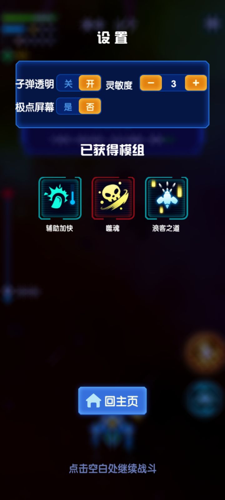 提个建议战斗中点击右上角设置看模组的时候,下面改成返回游戏吧,回主页可以放到左上角不这么显眼每次都看看模组,然后就直接点了回主页,然后就结束了😥就这个页面,会下意识点回主页的