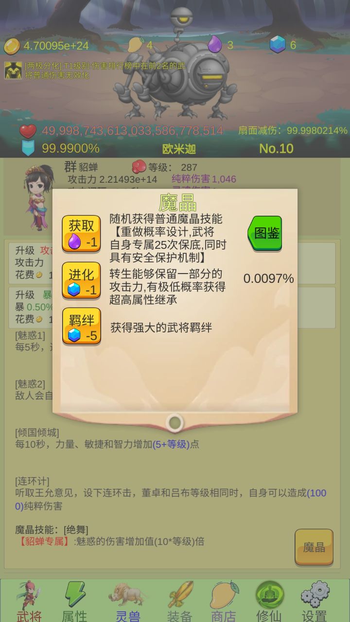 2.1 1通后 攒点灵魂魔晶可以附加绝对伤害,可以加快11-17的通关速度。