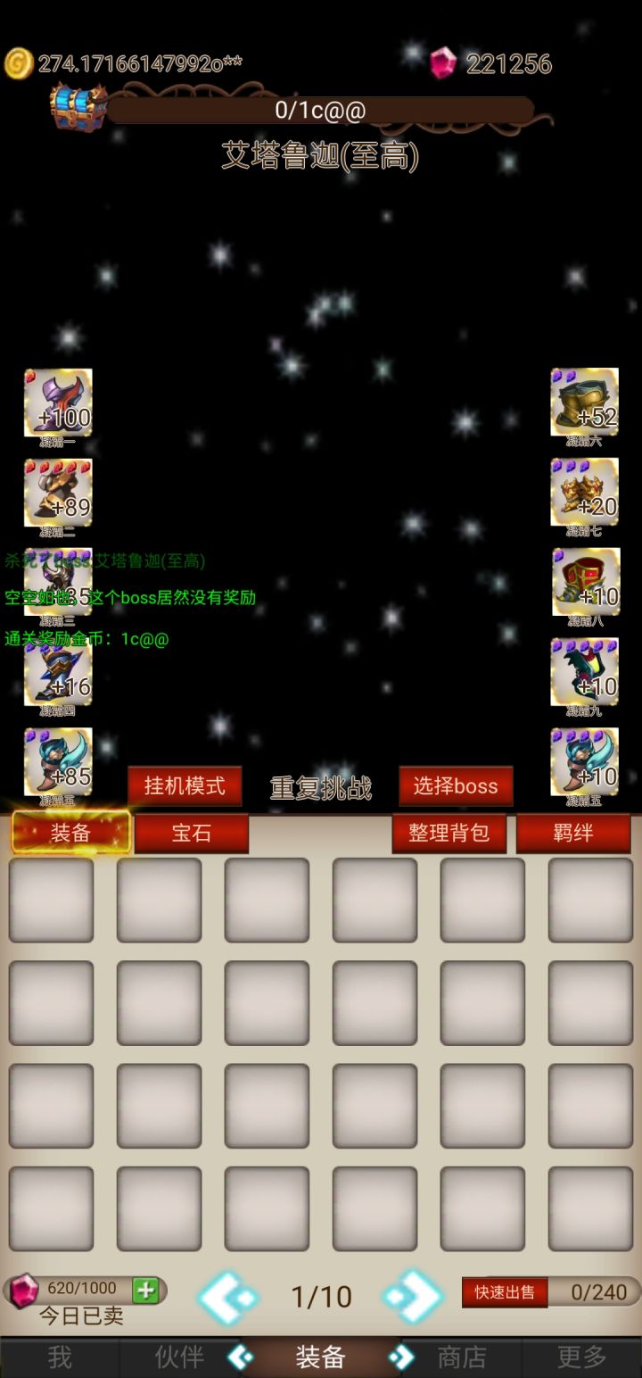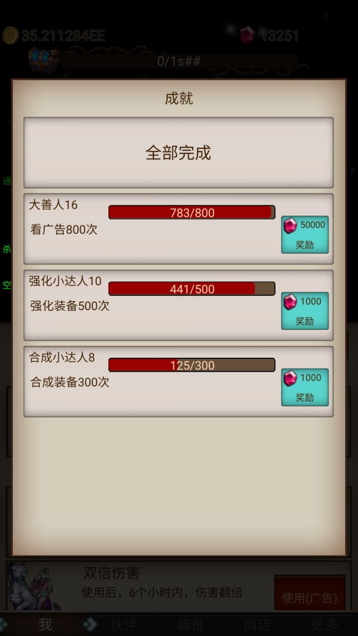 总共12小时下来,3天时间,第一天玩了6小时到5关卡住,第二天才发现你选好要刷得装备,然后秒退秒进可以无限刷,但是到第7关就不管用了,主要就是看广告升一件装备,每次最少弄够羁绊5件套再选择换装转移!