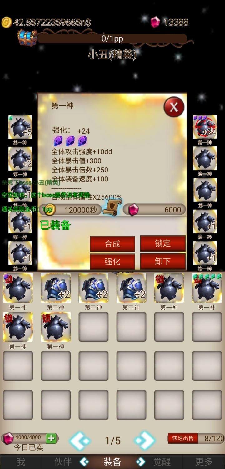 合成几个宝石,发现攻击低了几百倍,最重要是打怪钱不涨了。
