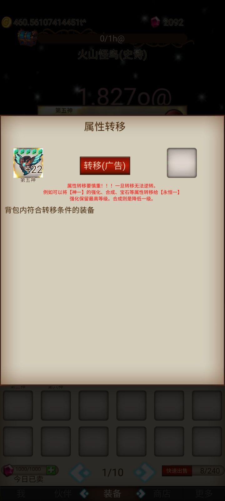 我把广告送的装备强化到了+22,然后附魔了,结果无法传承下去。